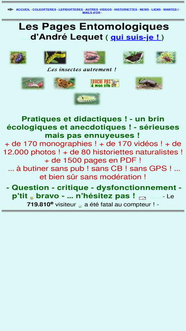 100%plus de 170 monographies sur les insectes, plus de 160 vidéos, et plus de 80 historiettes naturalistes sur le monde animal. c'est du vécu, et c'est a butiner sans modération