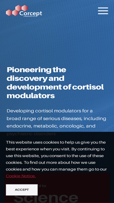 100%Corcept advances cortisol modulation therapies to treat serious diseases. Learn more about our research, innovation, and commitment to better health.