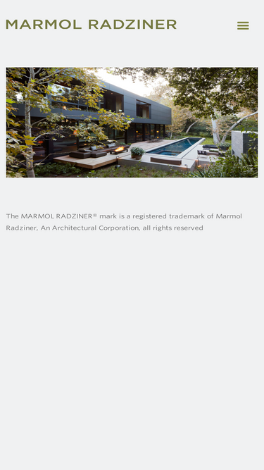 100%Marmol Radziner is a design-build practice based in Los Angeles that was founded in 1989 by American architects Leo Marmol, FAIA, and Ron Radziner, FAIA. Specializing in residential, commercial, hospitality, cultural, and community projects, the firm offers a full range of design services, including architectural design, construction, landscape design, interior design, furniture design, jewelry design, and Modern restoration.