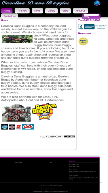* Free Shipping does not include Over-Sized Items click here for details. Carolina Dune Buggies is a company focused mainly, but not exclusively, on the Volkswagen air-cooled crowd. We stock new and used parts for stock VWs, dune buggies, kit cars, sand rails and trikes as well as complete dune buggy bodies, dune buggy chassis and trike bodies. If you need dune buggy parts we have them. We also have an engine shop, repair shop and restoration shop and can build dune buggies from the ground up.