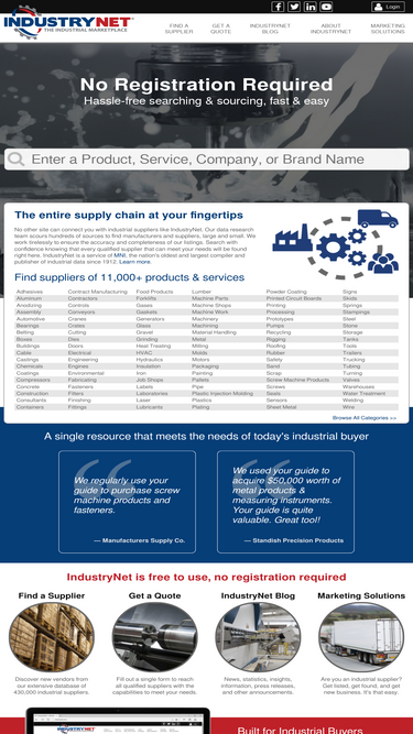 search and source more than ten thousand products, parts, supplies, and services with industrynet, the free industrial marketplace. industrynet lists over 360,000 industrial suppliers. locate nearby suppliers of parts, equipment, & machinery, and obtain free competitive quotes.