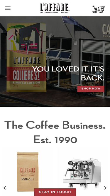 100%L’affare the coffee business. Est 1990. Bringing the best & freshest coffee to NZ. Buy coffee, Rocket coffee machines, equipment & coffee grinders online.