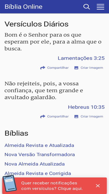 64%Leia, ouça e pesquise a Bíblia em vários idiomas e edições. Versículos, devocionais, estudos e conteúdos em áudio e vídeo para compartilhar sua fé!