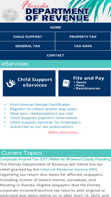 91%florida department of revenue - the florida department of revenue has three primary lines of business: (1) administer tax law for 36 taxes and fees, processing nearly $37.5 billion and more than 10 million tax filings annually; (2) enforce child support law on behalf of about 1,025,000 children with $1.26 billion collected in fy 06/07; (3) oversee property tax administration involving 10.9 million parcels of property worth $2.4 trillion.