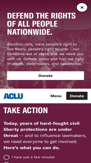 85%The ACLU dares to create a more perfect union — beyond one person, party, or side. Our mission is to realize this promise of the United States Constitution for all and expand the reach of its guarantees.