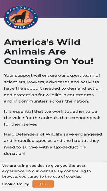 100%defenders of wildlife works on the ground, in the courts, and on capitol hill to protect and restore imperiled wildlife and habitats across north america. together, we can ensure a future for the wildlife and wild places we all love.