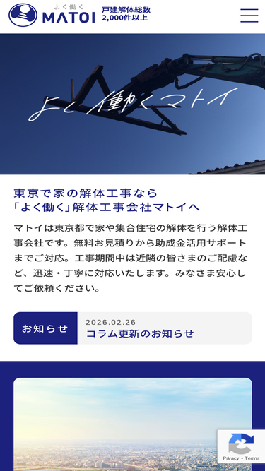 100%東京で家の解体工事をおこなうマトイの会社概要ページです。マトイでは近隣様との関係性を大事にしながら年間400件もの解体工事をおこなっています。会社名:株式会社マトイ。所在地:東京都練馬区南大泉6-21-1