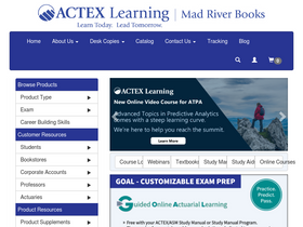 91%actex learning and mad river books.the experts in actuarial education. we offer study materials, vee courses, textbooks, career development, and more. our goal actuarial exam practice tool, and our online learning platform actuarial university are used by many actuaries and students to help them pass their soa and cas exams.