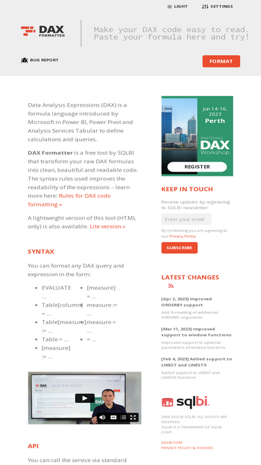 81%dax formatter is a free tool that transform your raw dax formulas into clean, beautiful and readable code.