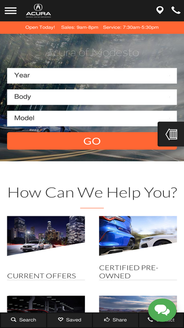 97%Whether you're searching for a new car or are in need of service, you can count on Fresno Acura! Ask us about our Online Shopper program to find out how to buy a car online.