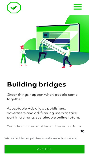88%Our advertisement criteria create more visibility and non-intrusive advertising. Only whitelisted (allow listed) ads are shown to ad-blocking users who allow Acceptable Ads