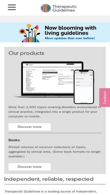 89%Contact Therapeutic Guidelines for inquiries, feedback, or support related to our guidelines and services.