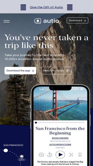 78%Explore 25,000+ GPS-triggered audio stories narrated by Kevin Costner, John Lithgow, and more. Download the #1 road trip audio tour app.