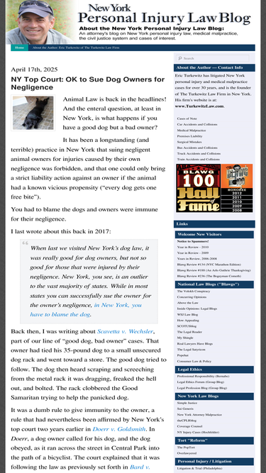 The other five competitors in the top 10 list are legalsanity.com, newyorkpersonalinjuryattorneyblog.com, abovethelaw.com, , and .