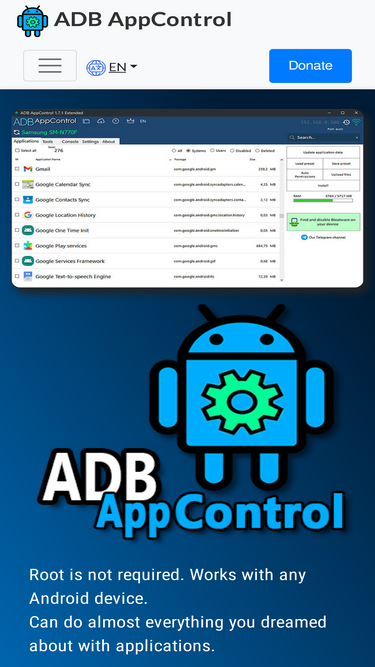 87%official website of the adb appcontrol application. free download. latest release. the ultimate applications manager and debloat tool for android devices.