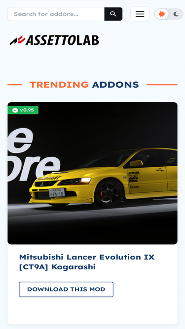 85%Explore the top free Assetto Corsa mods for cars and tracks at Assetto Hub. Boost your racing experience with our curated selections !