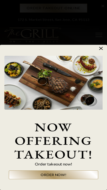 100%Visit The Grill on the Alley in San Jose, CA at 172 S. Market Street. Open Monday - Thursday: 11:30 am - 2:00 pm and 4:00 pm - 9:00 pm, Friday: 11:30 am - 2:00 pm and 4:00 pm - 10:00 pm, Saturday: 4:00 pm - 10:00 pm, and Sunday: 4:00 pm - 9:00 pm.