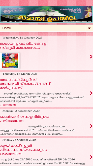 83%പി.ഒ.പഴയങ്ങാടി കണ്ണൂര് ജില്ല , പിന് 670303 ഫോണ് : 04972872255 e-mail :aeomadayi@gmail.com