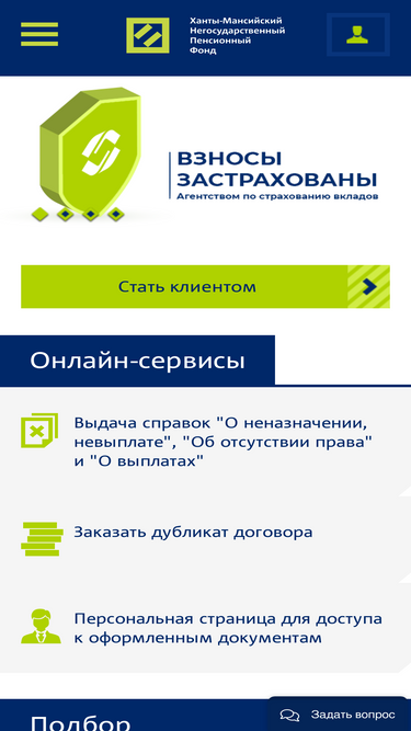 82%акционерное общество «ханты-мансийский негосударственный пенсионный фонд» (ао «ханты-мансийский нпф») реализует услуги для физических лиц и организаций в сфере пенсионных услуг.