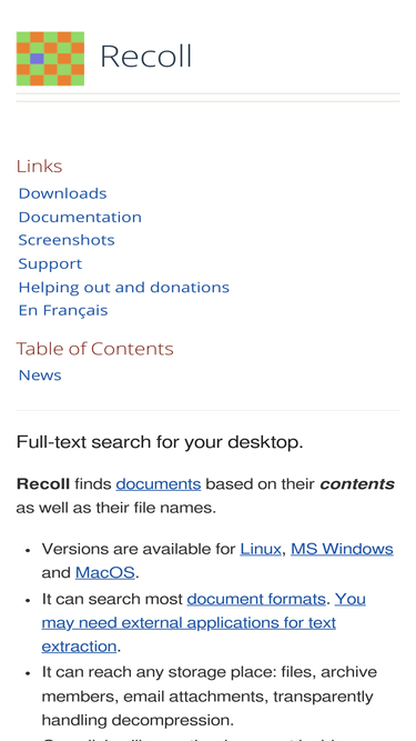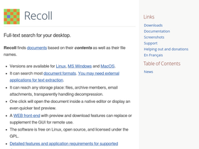 35%recoll is a desktop document search application for unix, linux, microsoft windows and macos, based on the xapian search engine library.