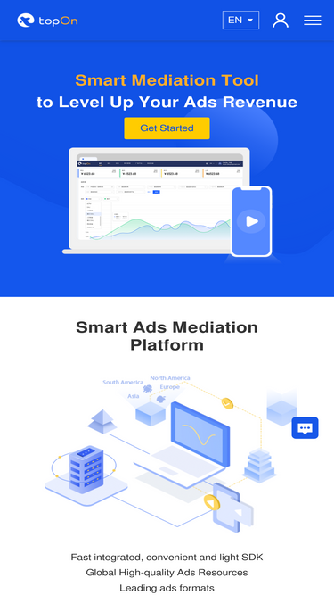 74%topon is a tool to help mobile apps & games that have chosen the advertising as a monetization model to manage their ads as efficiently as possible. with a variety of advertising formats and deep support for android, ios, unity, adobe air, cocos and other development engines, developers can easily monetize traffic with the world's mainstream advertising platforms through an sdk, and view 100% real and transparent core data of revenue, ecpm, arpu, ltv, etc. in the dashboard.