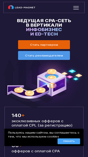81%lead-magnet - ведущая cpa сеть в вертикали инфобизнес и ed-tech. партнерка работает по модели cpl (оплаты за подписки и лиды). преимущества: 150+ офферов от прямых рекламодателей на любые тематики в онлайн образовании: начиная с обучений по уходу за волосами, программированию, эзотерике, иностранным языкам, здоровье, заканчивая обучениями по старту своего бизнеса, заработку на инвестициях, профессии. платим за лида/email подписчика от 50 до 1000 рублей.