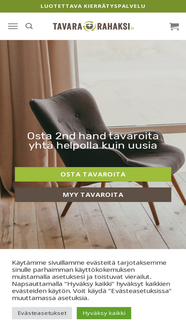 62%Tutustu Tavara Rahaksi -verkkokaupan sivuihin. Löydä yhteystiedot, usein kysytyt kysymykset ja muuta hyödyllistä tietoa käytettyjen tavaroiden ostamisesta ja myymisestä.