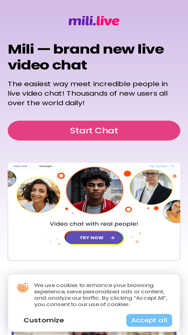 83%Thousands of real and verified people from around the world are online and waiting for you. Start video chat now!