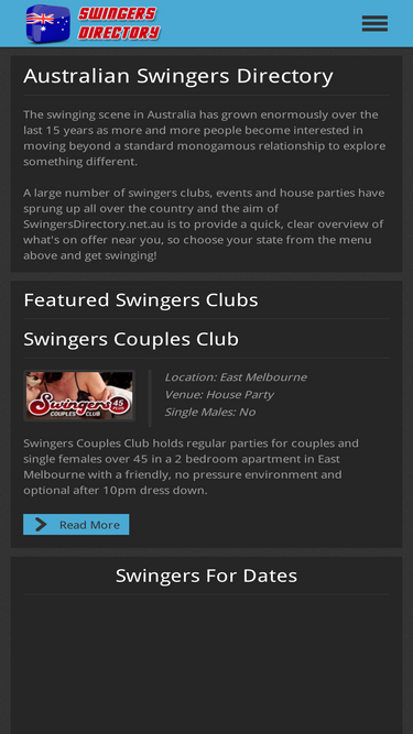 95%australia's most comprehensive and up to date listing of genuine swingers' clubs, house parties and swingers' events.