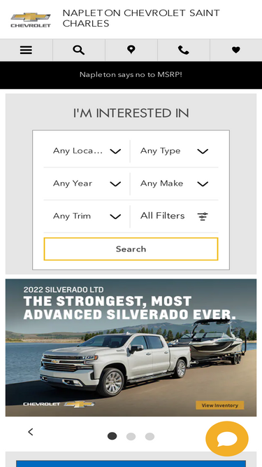 90%At Napleton Chevrolet St. Charles, we offer a wide variety of new Chevy cars, trucks and SUVs - with a model to fit everyone's needs and budget requirements.