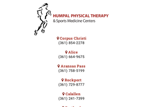 93%Home - Humpal Physical Therapy & Sports Medicine Centers - conveniently located for Alice, Aransas, Corpus Christi, Portland and Rockport call (361) 854-2278