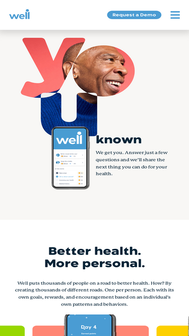 100%Better health. More personal. Well is the first engagement platform to deliver a daily health partner fit to your modern life. So much for one-size-fits-all. Well is personal.