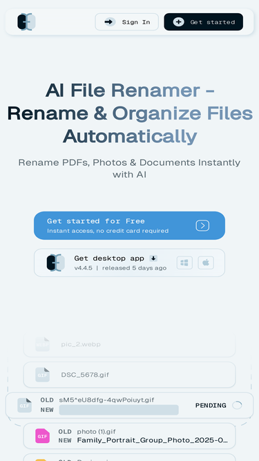 100%The AI file organizer that reads your documents and names them automatically. Batch rename files, create a paperless office, and never manually organize again. Try free.