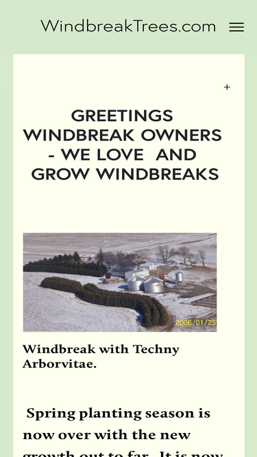 WindbreakTrees.com "Protecting your family, home, farm or business from the wind" Our 52nd year of designing, growing and planting windbreaks. We are windbreakologists ™.