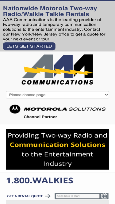 98%authorized motorola dealer that also carries other motorola products and services for tv, film, special event and music touring industries aaa communications llc
