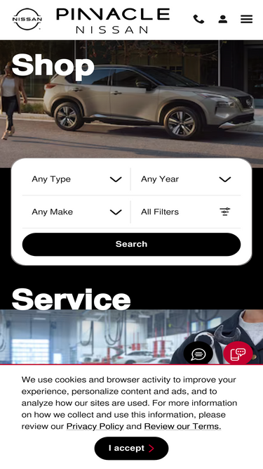 buy a nissan from home! explore new and used cars at pinnacle nissan. we have a wide selection of vehicles along with an outstanding auto repair shop. visit us to test drive!