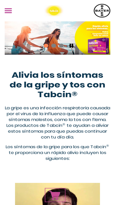 76%Contacto de Tabcin®, página que con la información para contactar con Tabcin®, medicamento antigripal de Bayer, como dirección, número de teléfono o email