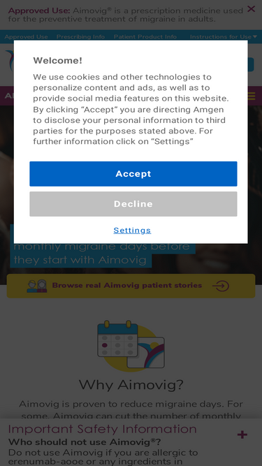 73%Find answers to frequently asked questions (FAQs) about Aimovig® (erenumab-aooe). See Full Prescribing & Safety Information.
