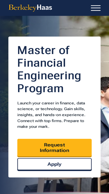 61%Launch your career in finance, data science, or technology in just one year with the Master’s in Financial Engineering Program at Berkeley Haas.