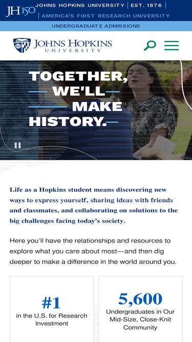71%Life as a Hopkins student means discovering new ways to express yourself and collaborating on solutions to the big challenges society faces today.