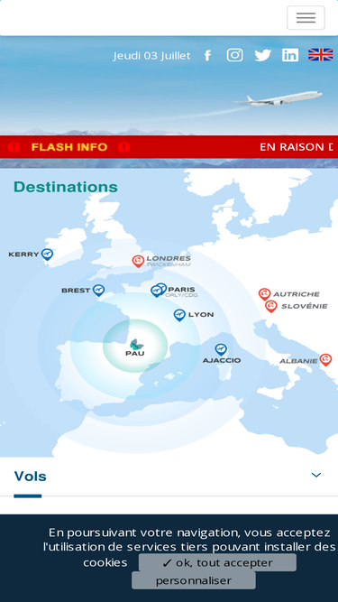 90%Informations sur les destinations en vols direct, réservation de billets pas chers, navette directe Lourdes, navettes stations de ski, parking gratuit.