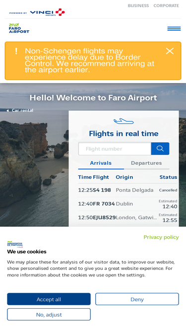 95%página web oficial del aeropuerto de faro - salidas y llegadas en tiempo real, compañías aéreas y destinos, accesos, reserva de parking y mucho más. ¡buen viaje!