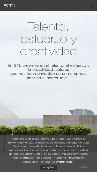 85%bienvenido a sociedad textil lonia. en stl creemos en el talento, el esfuerzo y la creatividad, valores que nos han convertido en una empresa líder del sector textil.