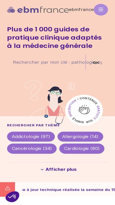 76%ebmfrance.net est une plateforme de recommandations de médecine générale, développée par le collège de la médecine générale (cmg).