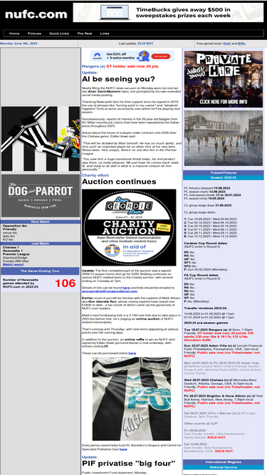 The other five competitors in the top 10 list are nufc.com, fifa.com, varzesh3.com, kooora.com, and eversport.tv.