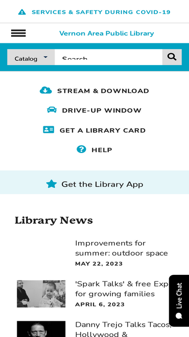 73%Library building open Mon-Thu 9-9, Fri-Sat 9-5, Sun 10-5. Contact-free services also available: drive-up window, e-books, streaming video, online programs, help by phone, chat, or text.