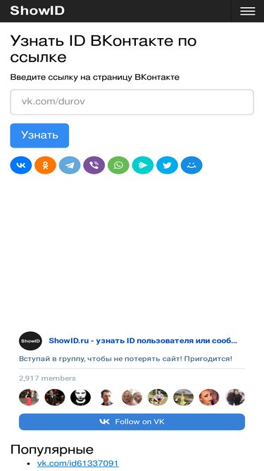 87%сервис, позволяющий узнать id вконтакте: человека, пользователя, группы, сообщества, паблика, страницы по ссылке/нику/слову.