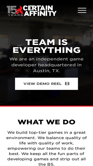 100%Certain Affinity is an independent game developer known for creating innovative, high-quality games and headquarted in Austin, TX.