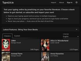 80%Test your typing while reading great books like Alice in Wonderland, 1984, Dracula, and The Art of War — or import your own!