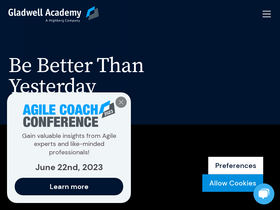 56%Gladwell Academy trains professionals at the intersection of management, IT and innovation. View our Agile & SAFe training portfolio.